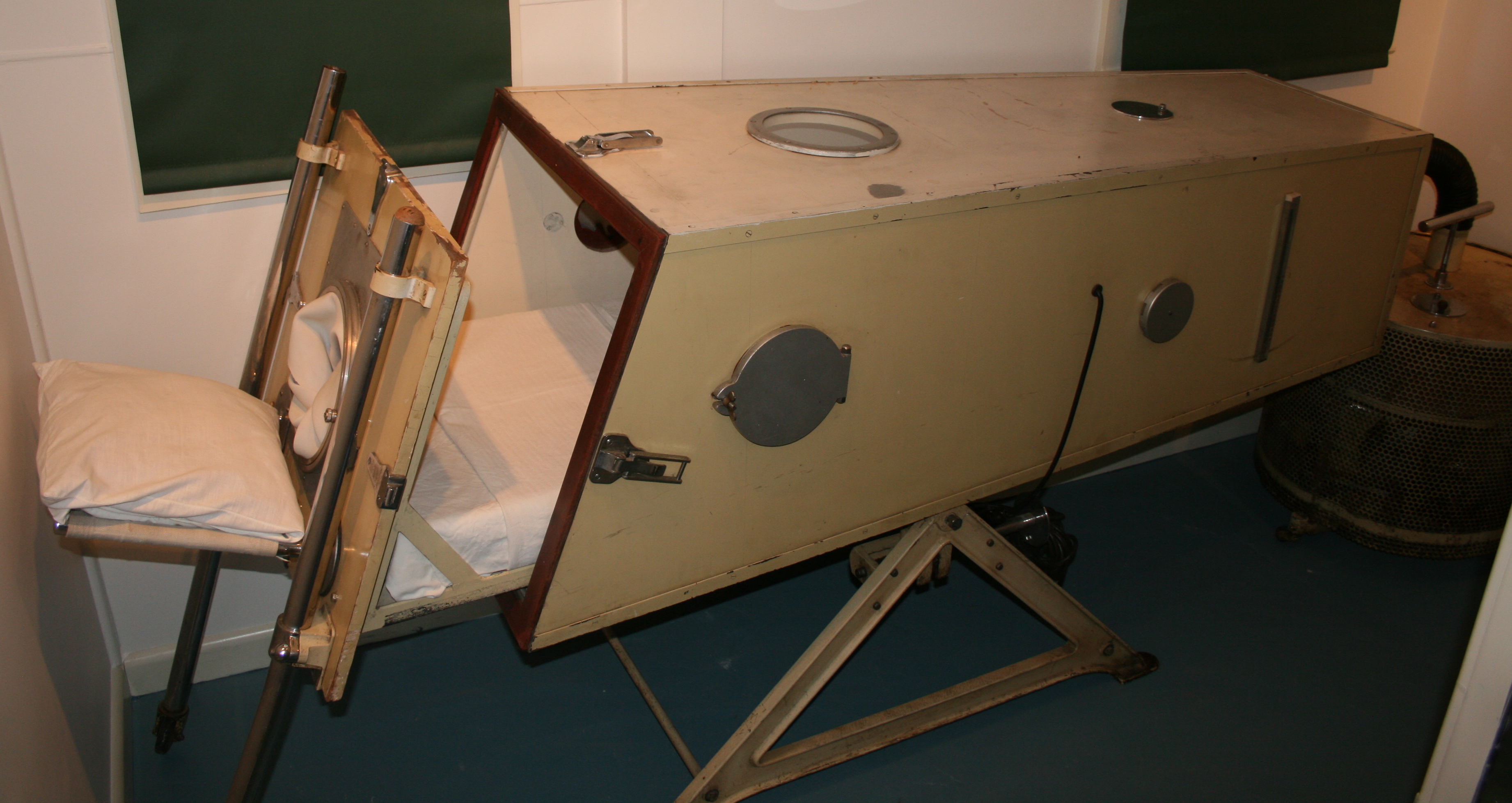 – Hospital and medical equipment such as a Both iron lung (which was borrowed by the National Museum of Australia for an exhibition on polio in Australia), anaesthetic machines, hospital bed, metal medical cabinets, old pharmacy bottles, baby scales, prosthetic feet and surgical instruments.